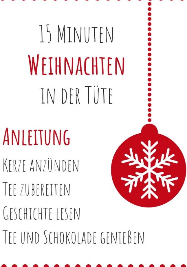 Entdecken Sie die perfekten Möglichkeiten für eine 15 Minuten Auszeit Geschichte zum Ausdrucken in der festlichen Zeit! Mit einer 15 Minuten Weihnachten Vorlage PDF können Sie schnell und einfach kreatives Material für die Feiertage erhalten. Unsere 15 Minuten Weihnachten in der Tüte Druckvorlage bietet eine unterhaltsame Aktivität für Kinder. Die 15 Minuten Weihnachten Anleitung ist ideal, um festliche Stimmungen zu schaffen. Vergessen Sie nicht die 15 Minuten Weihnachten im Glas für eine einzigartige Deko-Idee! Holen Sie sich auch die 15 Minuten Weihnachten Vorlage zum Ausdrucken kostenlos, um die Vorbereitungen für das Fest noch einfacher zu gestalten.