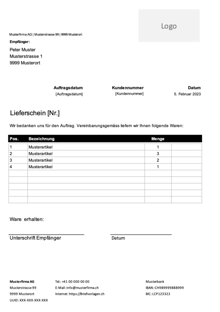 Eine Lieferschein Vorlage ist ein Dokument, das die Lieferung von Waren begleitet und Informationen über die Produkte und deren Menge enthält.