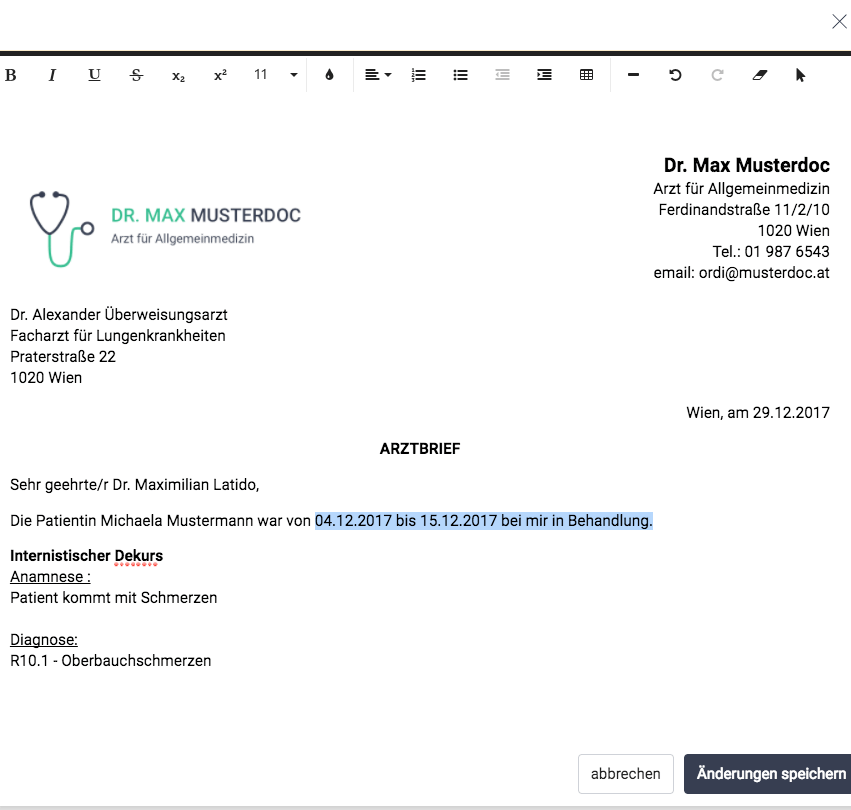 Gibt es eine Arztbrief Vorlage für Word-Dokumente?