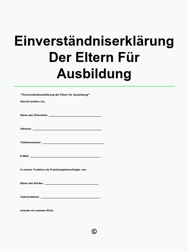 Was ist eine Einverständniserklärung der Eltern für die Ausbildung?