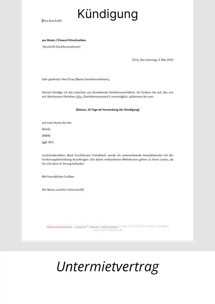 Wo finde ich eine Vorlage für die Kündigung eines Untermietvertrags?