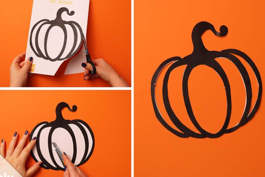 Herunterladen Sie unsere kreative Kürbis Fensterbild Vorlage zum Ausdrucken! Perfekt zum Kürbis Basteln und ideal für Kinder, um ihre motorischen Fähigkeiten spielerisch zu fördern.