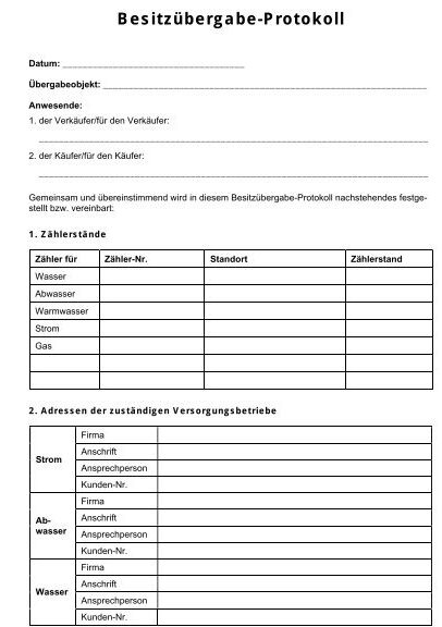 Gibt es Vorlagen für ein Übergabeprotokoll?